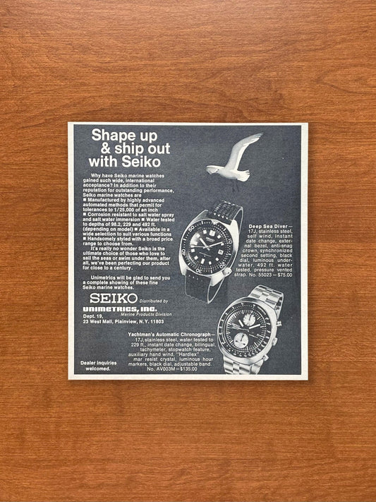 1971 Seiko diver 6105-8000 and 6138 Chronograph Advertisement