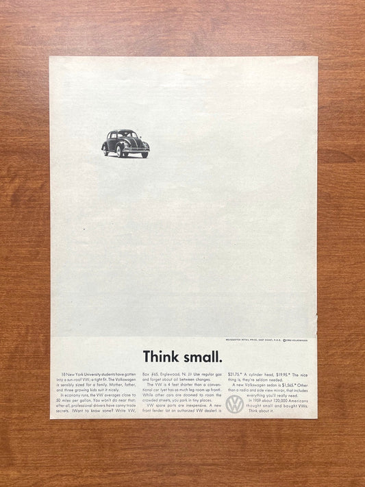 1960 Volkswagen VW Beetle "Think small." Advertisement