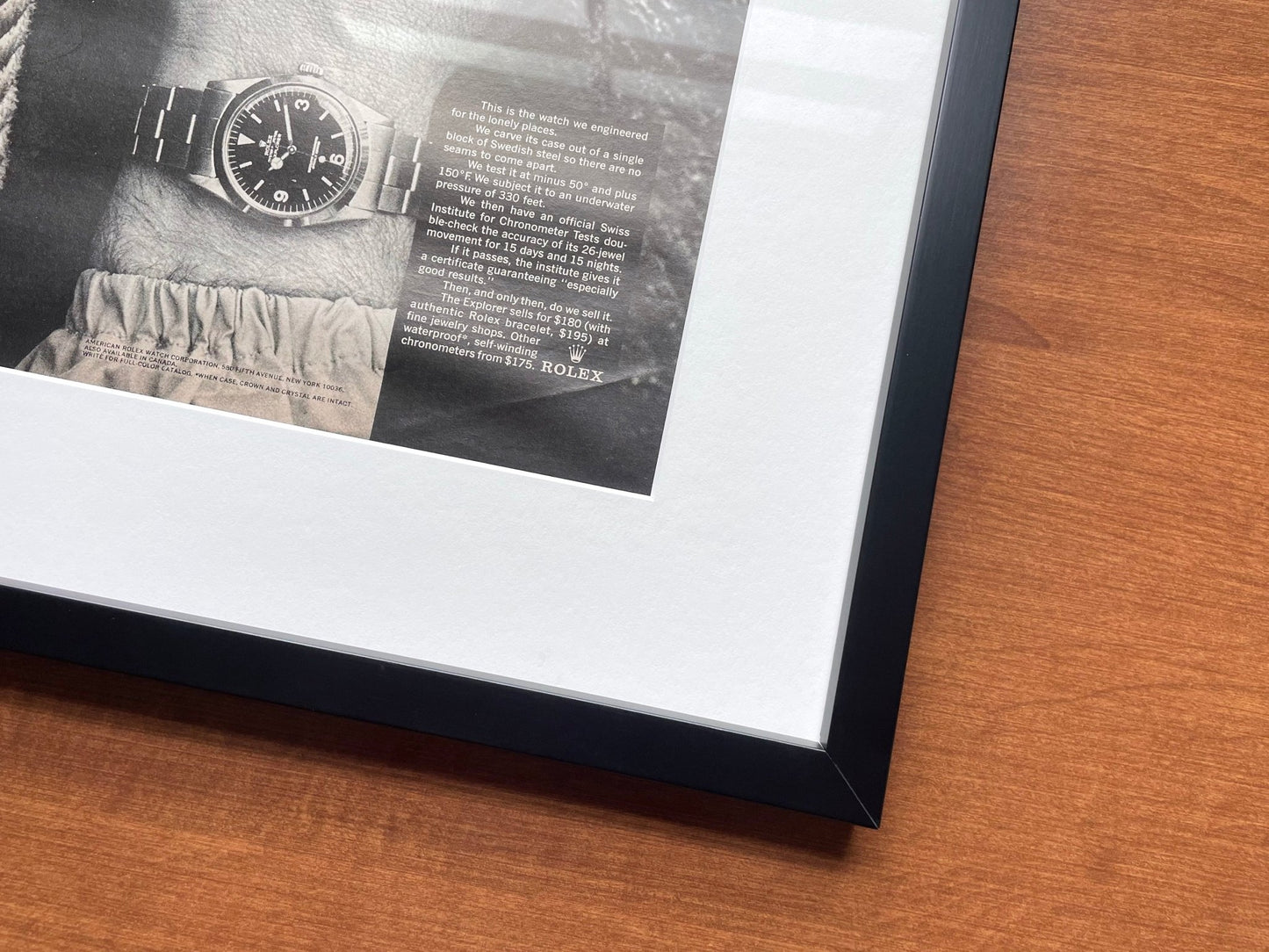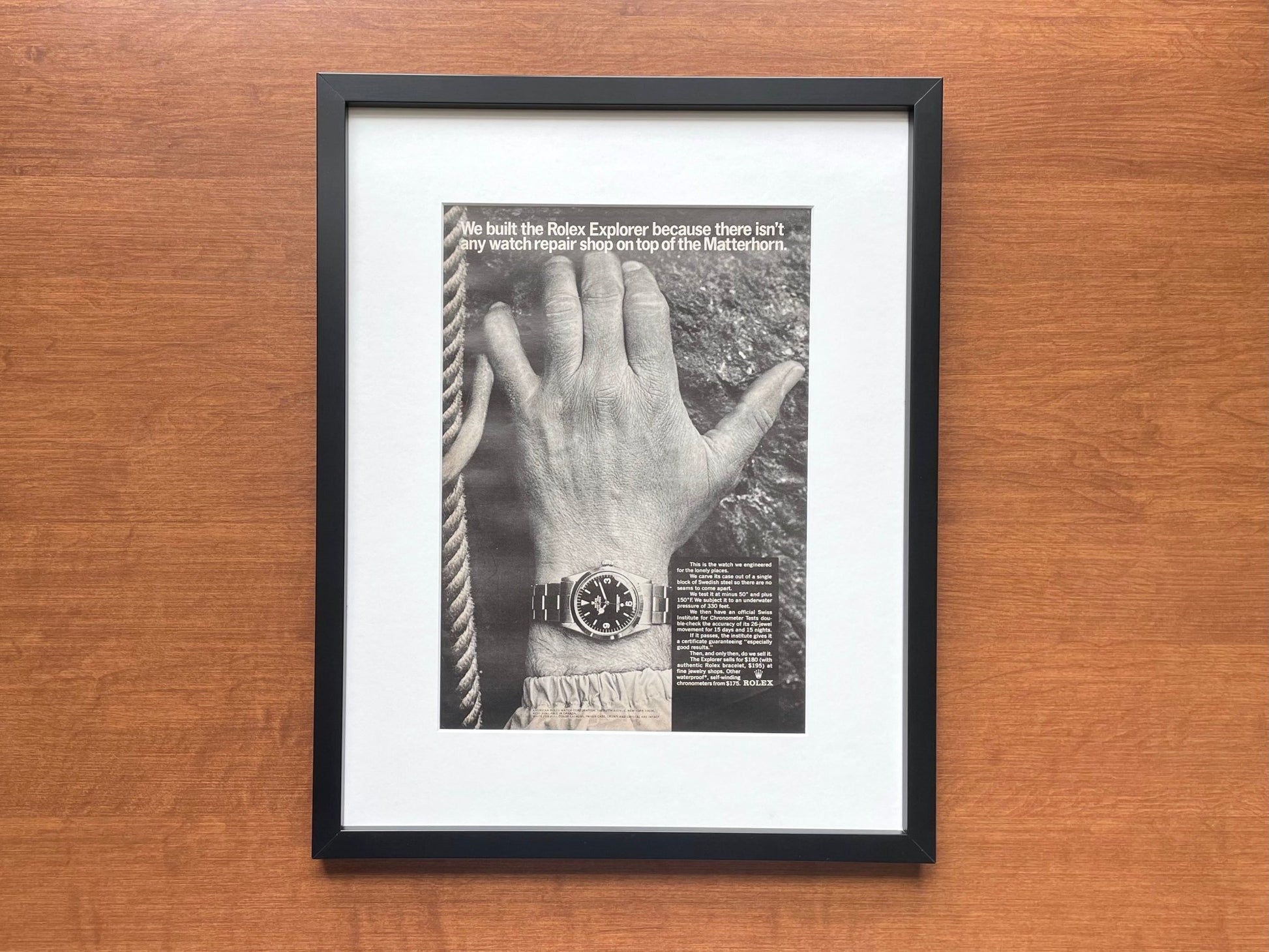 1966 Rolex Explorer "Top of the Matterhorn" Advertisement in Black Wood Frame
