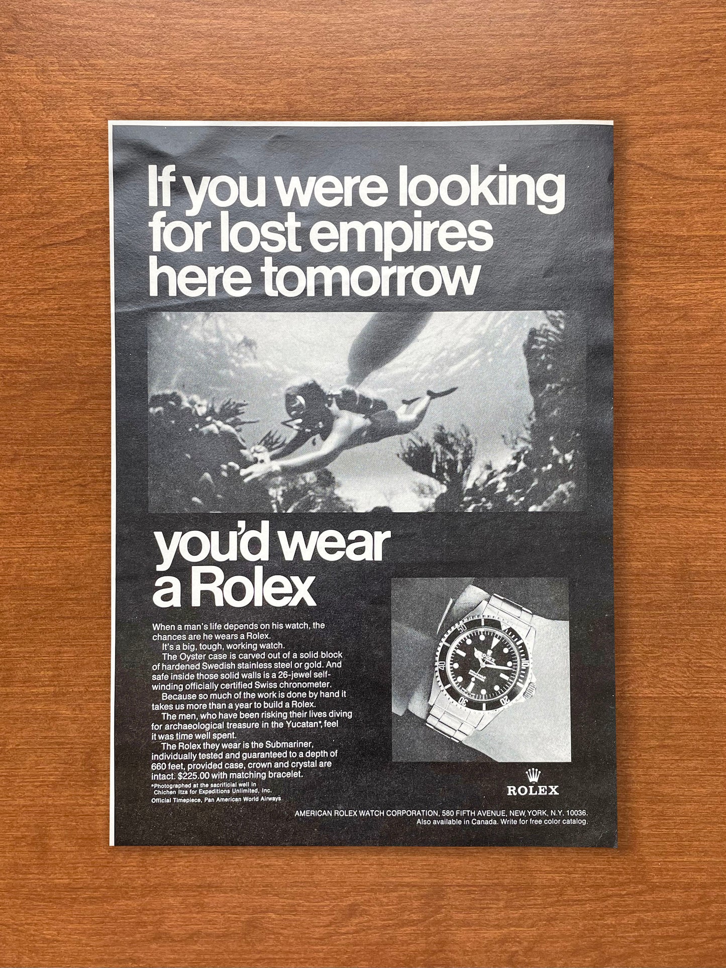 1968 Rolex Submariner "If you were looking for lost empires..." Advertisement