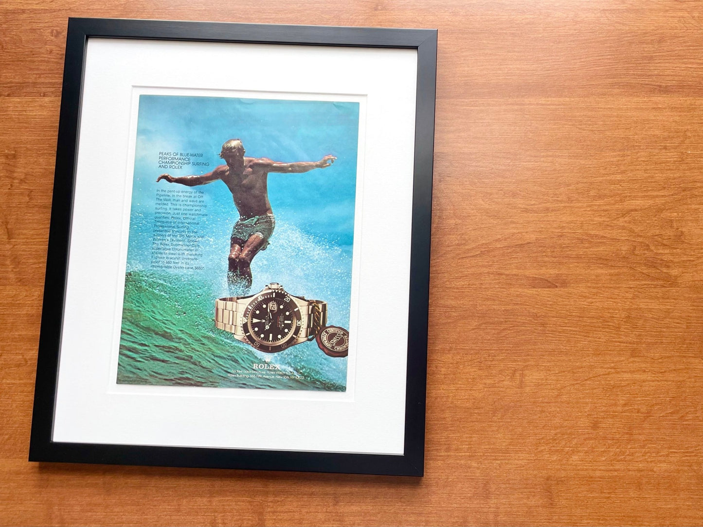 1978 Rolex "Red" Submariner Ref. 1680 with Surfer Advertisement in Black Wood Frame